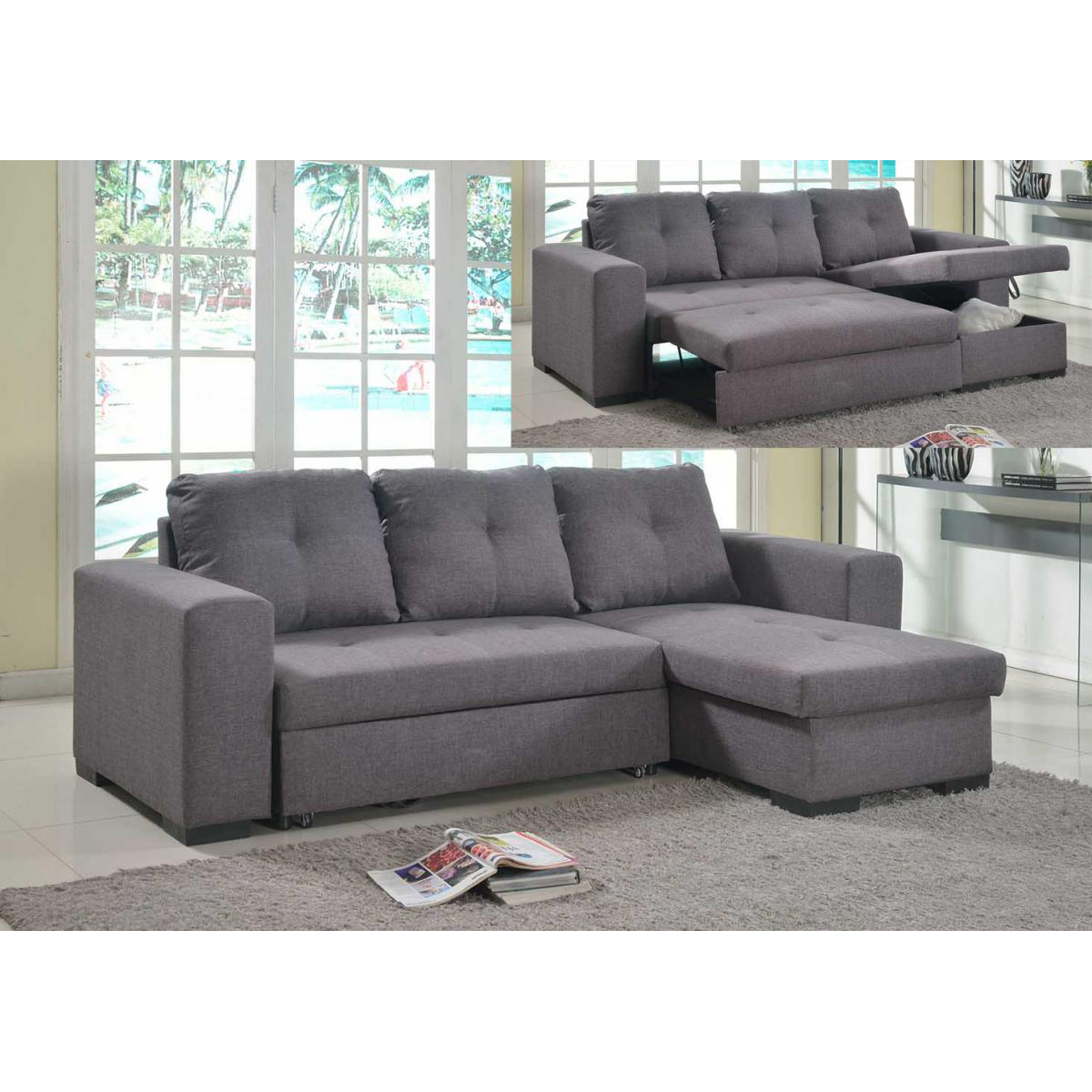 Gianni Chaise Sofa Bed with Storage Linen – Grey, interchangeable left or right hand side