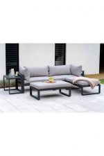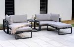 – Sleek black frame and matt grey cushions for a modern look